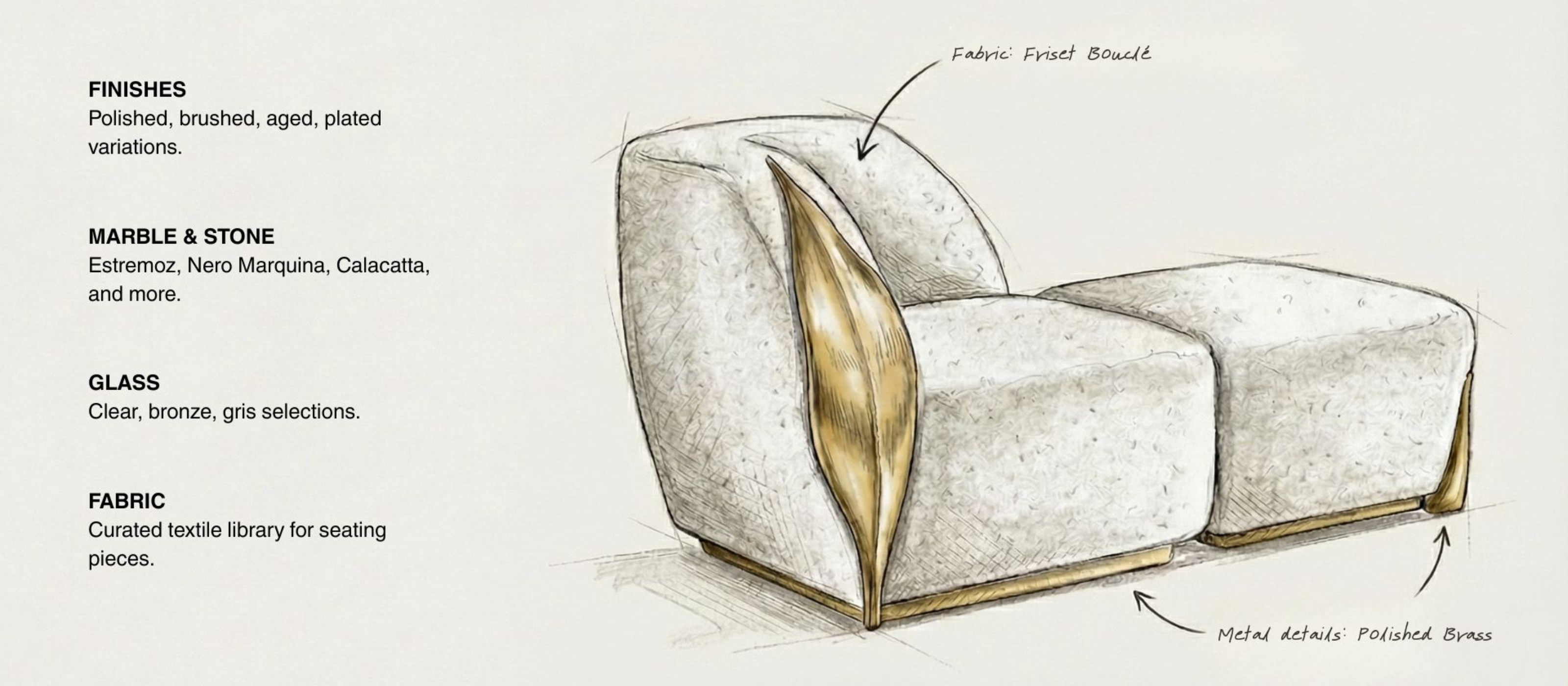 Through MAEVE's customisation services, we adapt our existing pieces according to your precise requirements - modifying finishes, dimensions or materials to ensure our creations perfectly suit your project specifications.